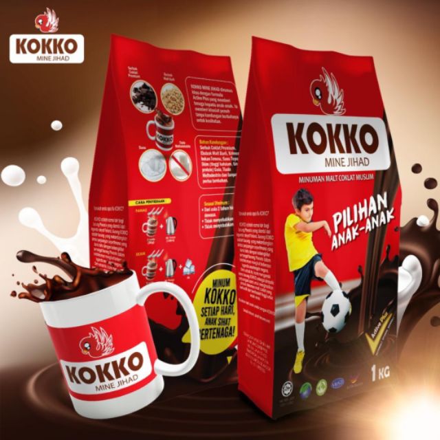 KOKKO MINUMAN MALT COKLAT PRODUK MUSLIM 1 KG with FREEGIFT Sumber : shopee.com.my